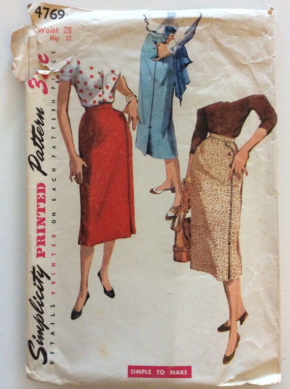 Vintage Ca 1954 Simplicity 4769 Womens 1 Yard Skirt Sewing Etsy